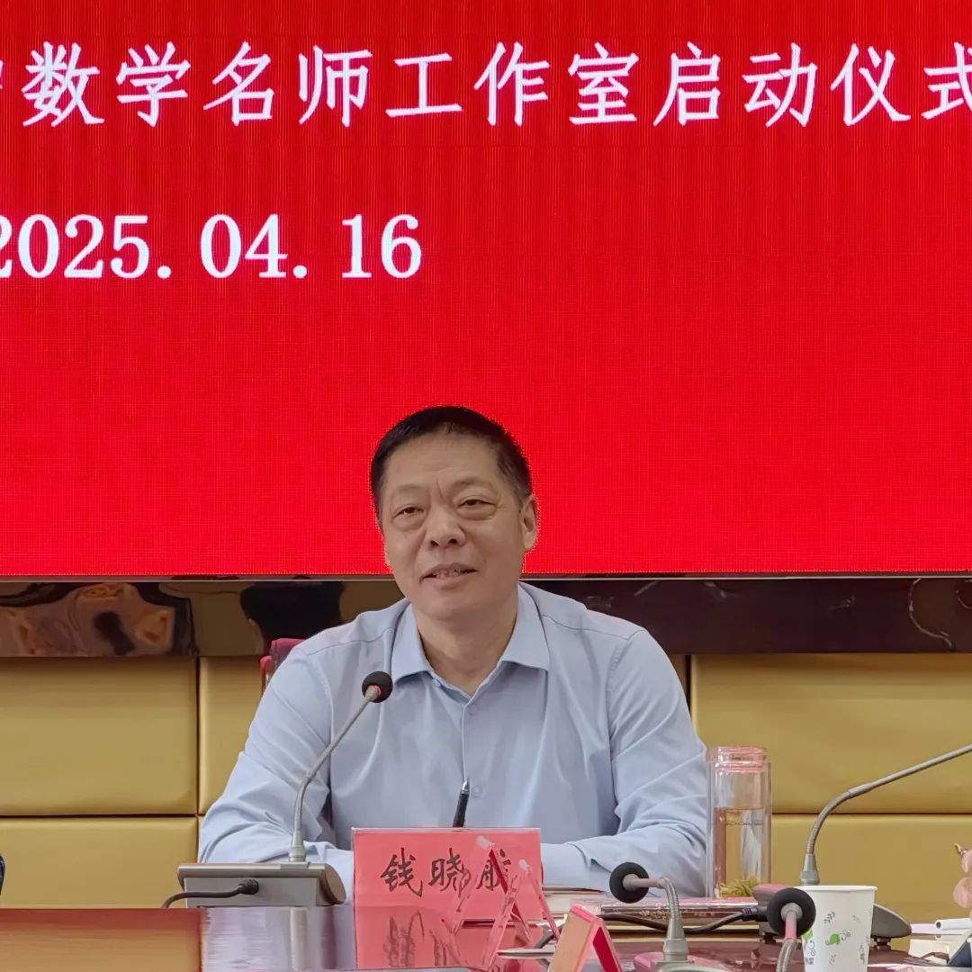 江苏省黄桥中学校长钱晓航致欢迎辞,他对工作室的成立表示热烈祝贺,并寄语全体成员:期望工作室立足教学实践,成为引领区域数学教育改革的先锋平台;聚焦课堂创新,助力泰兴高中数学教学质量全面提升;同时勉励成员珍惜研修机会,在专业成长与团队协作中实现自我突破,以扎实行动回应教育高质量发展的时代召唤。