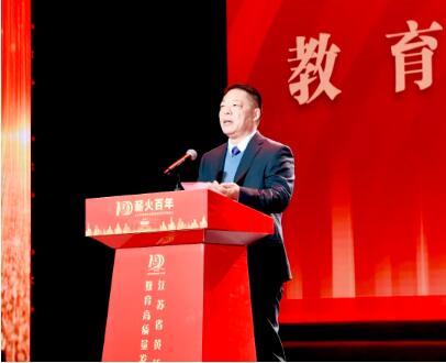 刘部长在讲话中说,黄桥中学是泰兴教育的一张亮丽名片。一百年薪火相传、砥砺沧桑,从先贤文士筹资办学到几易校名、数迁校址,初心不忘,信仰如磐,铸就了不平凡的光辉历程;一百年厚德笃学、争创一流,从民办到公办,从县重点到省重点,再到省首批四星级普通高中,实现了跨越式发展。一百年启智育人、培根铸魂,一代代教师以身为烛、躬耕杏坛,一批批学子勤奋刻苦、追求梦想,成长为国家的栋梁之材。站在新的历史起点上,她希望黄桥中学用决心和定力把学校办得更好,发扬黄桥决战精神,秉承传统、继往开来,以质图强、以治促强,加快建成江苏省高品质示范高中;全体教师用初心和能力把学生教得更好,大力弘扬教育家精神,以德立身、以德立学、以德施教,做学生为学、为事、为人的大先生;莘莘学子用恒心和毅力把学业抓得更好,树立正确的世界观、人生观、价值观,德智体美劳全面发展,不负时代、不负韶华,在激情奋斗中绽放青春光芒。