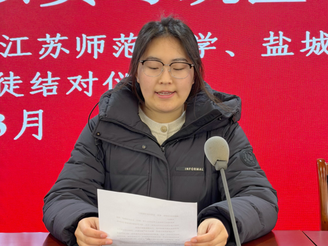 实习生代表徐婧舒同学深情发言。她表达了对三尺讲台的向往与热忱,表示将以谦逊的态度虚心向学,把理论转化为实践,在实习中践行教育初心,以青春之姿迈出从“教育学习者”到“教育实践者”的坚实步伐。