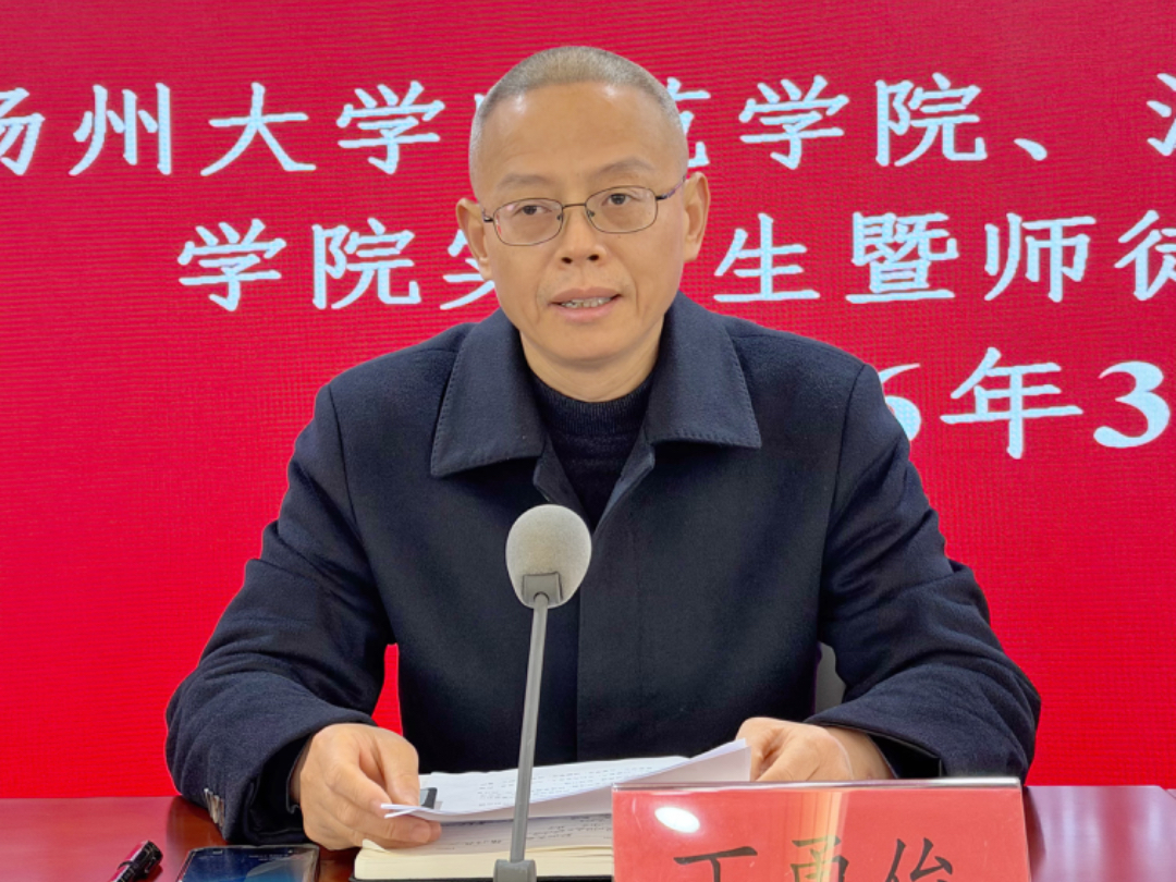 丁勇俊副校长发表讲话。他首先向三所高校对黄桥中学的信任和支持表示感谢,向各位指导老师致以敬意。丁校长对实习生提出四点希望,叮嘱大家知行合一、立德树人、守正创新、严守纪律,在实践中锤炼自我;同时要求指导老师悉心引路、严爱相济、教学相长。他表示,黄桥中学始终坚持立德树人根本任务,坚守乐教善导、笃行致远的育人理念,与高校共建实习基地,为青年教师成长搭建坚实平台。